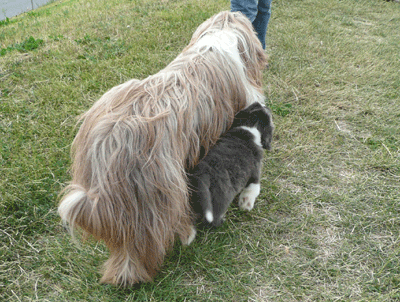 | Peaches gibt sich nicht mit "steh" zufrieden, sie eifert ihrer großen Schwester Nell nach und übt schon mal schaulaufen.