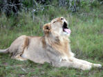 | Am Spätnachmittag störten wir diese Löwenfamilie bei der Siesta. Der Vater und seine beiden Töchter ließen sich nicht stören. Aber schauen Sie sich mal genau den Junglöwen an: Als ich meiner Schwester erklärte, dass ich seine strubbelige Mähne gerne mit der Mason-Pearson-Bürste in echte Löwenform bringen möchte, schlug er uns mit furchteinflößendem Verhalten in die Flucht.
