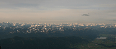 | Das ist der Blick in Jos Ballon. Der ist ja schon schön, aber noch viel schöner ist der Blick vom Ballon auf die Alpen: