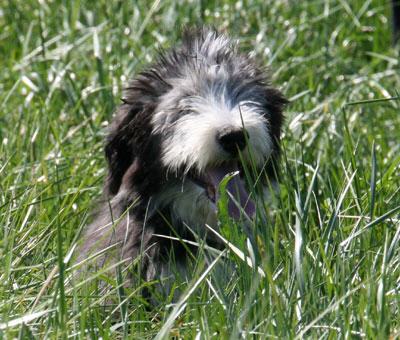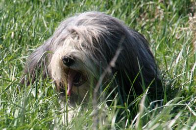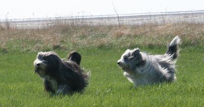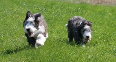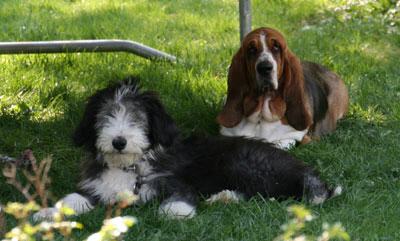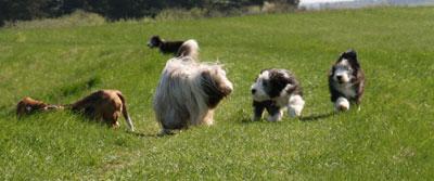 | Elbtouristen kennen ja unsere große Beardie-Truppe. Aber diesmal waren wir noch aufsehenerregender: drei Beardie-Welpen, drei Beardie-Damen und ein Basset-Pärchen.
