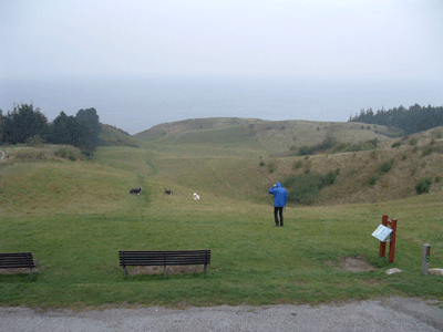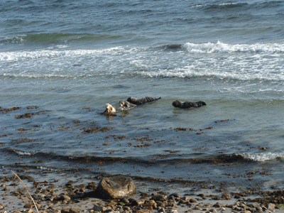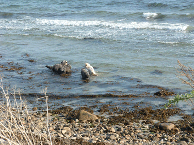 | Wir waren kaum auf dem Feldherrenhügel angekommen und blickten über Insel und Meer, als Finn schon seine Truppe ins Wasser rief. Es wurde natürlich nicht nur getobt und geschwommen, sondern auch, schneller als wir gucken konnten, getrunken. Scheint geschmeckt zu haben und ist allen bis auf Fine gut bekommen. Die hatte erst mal ein wenig Durchfall. Paddy hatte sich schon aklimatisiert, der musste am Vortag nach Meerwassergenuss kräftig spucken. Danach haben sie alle weiter Meerwasser getrunken, allerdings sparsamer, und hatten keine Probleme mehr.