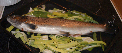 | Uli fand sie etwas schlank, unsere Lachsforelle. Aber für vier Personen war sie üppiges Mahl.