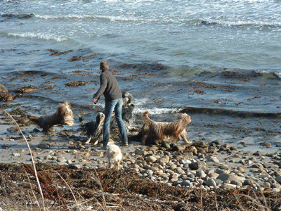 Am nächsten Tag wurde ein neuer Strand erkundet. Hier war es nicht so hügelig, aber besonders schön, weil wir den Strand für uns allein hatten. Ein tapfrer Mann, der sich acht bellenden Hunden stellt und Stöckchen für sie wirft: