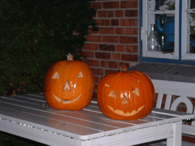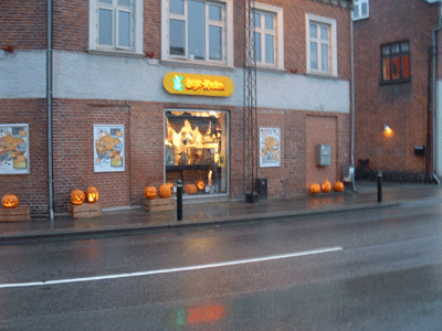 | Vorgestern feierten die Samsinger Halloween. Für sie sicherlich ein passenderes Fest als für viele Deutsche, weil der Kürbis im Herbst neben Rot- und Weißkohl das Bild der Insel prägt. Alle Häuser waren liebevoll geschmückt und die Menschen in den kleinen Läden hatten sich passend verkleidet. Wie gut, dass wir vor dem Packen doch noch nach Tranbjerg gefahren sind, weil ich im Antiquitätengeschäft diese hübschen alten Gläser gesehen hatte, aus denen der Wein übrigens hheute besonders gut schmeckt. Sonst hätten wir dieses Highlight gar nicht miterlebt.