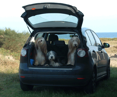 Unserem guten alten Peugeot bricht inzwischen schon der Angstschweiß aus wenn das Jetbag aufgeschnallt wird. Er weiß schon, dass es für ihn dann nicht mehr wie früher einen Ausflug zum Skifahren bedeutet, sondern: Alle 5 Hunde, Roland, Vera, Menschenfutter, Hundefutter, Hundedecken, Menschenkoffer und zu allerletzt noch das grüne Plastikköfferchen mit Tinka wollen nach Dänemark befördert werden!