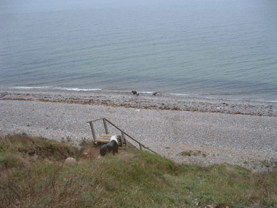 | Die Bilder zeigen gutes Wetter. Es war angenehm, recht warm und ohne Wind. Aber der dänische Bollerofen musste abends trotzdem heizen um die Feuchtigkeit aus dem Haus zu vertreiben. Acht Hunde, die ein- bis zweimal täglich im Meer schwimmen (Paula schwimmt zwar nicht wirklich, kühlt sich aber doch gern den Bauch im Wasser) bringen sehr viel Feuchtigkeit ins Haus.