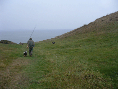 | So beginnt er, der kulinarische Teil. Wieder mit Auskundschaften - nicht nur Wiesen und Strände für die Hunde werden gesucht, sondern auch Fischgründe, die uns ein gutes Abendessen erhoffen lassen.Manchmal begleiten wir unseren Angler zu seinen Angelstellen.