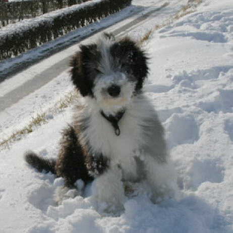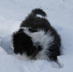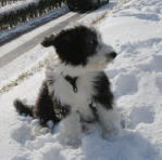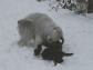 | Wolke gehörte zu den ersten, die ihr Geschäft auf der Terrasse verrichten wollten. Seit gestern Abend haben aber auch die anderen entdeckt, wie schön es draußen im Schnee ist.