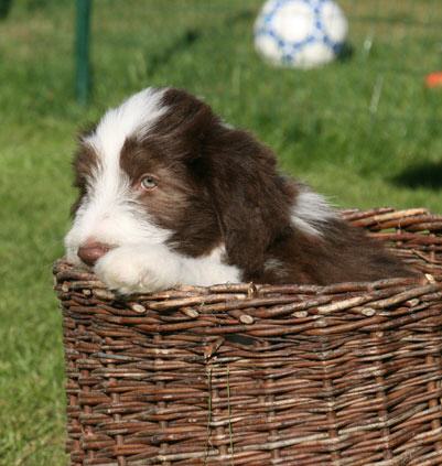 | Noch passen noh drei in den Korb.Jedes Mal, wenn ich Welpen in den Korb setze, um sie in den Garten zutragen, muss ich daran denken, wieviel Glück ich da einpacke!