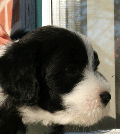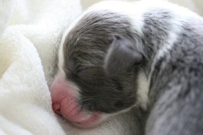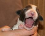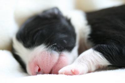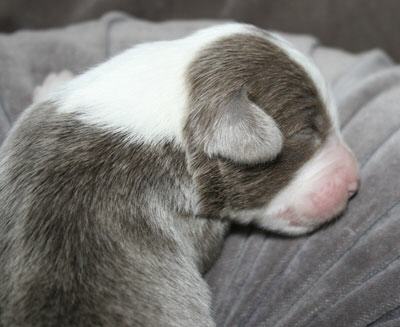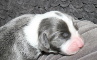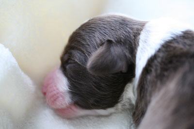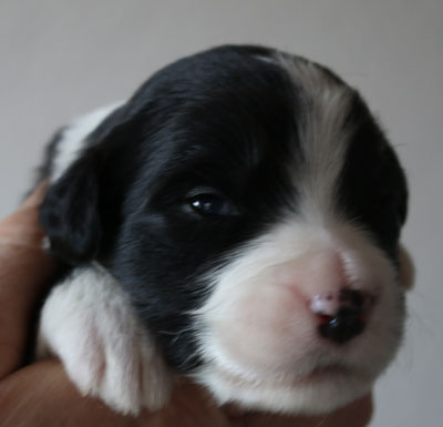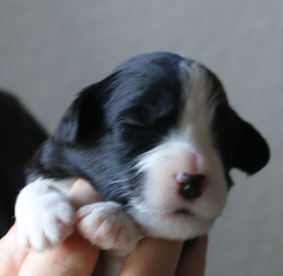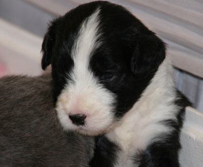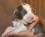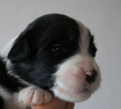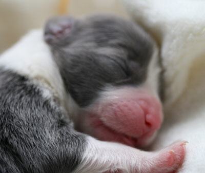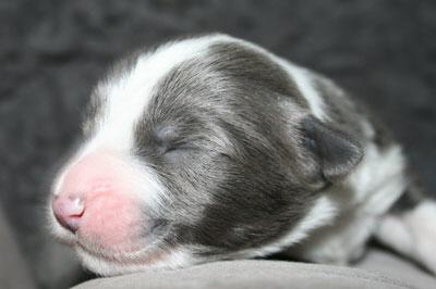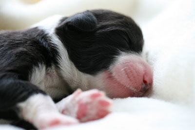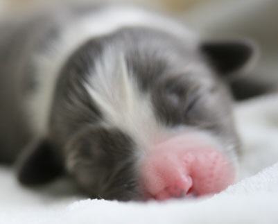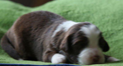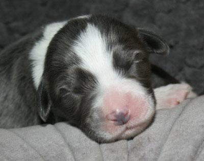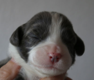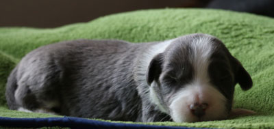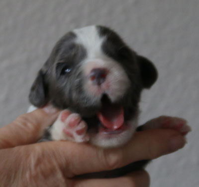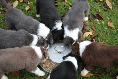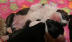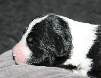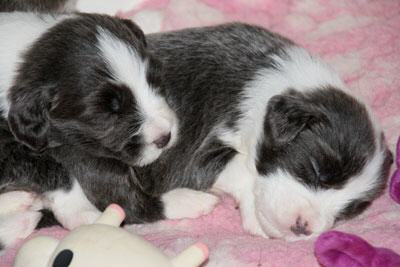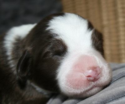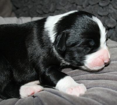 | Wie immer - in der Reihenfolge der Geburt!Mama Jette liegt gerade auf dem Rücken in der Welpenkiste und die Kleinen sind satt und zufrieden - einfach herrlich!