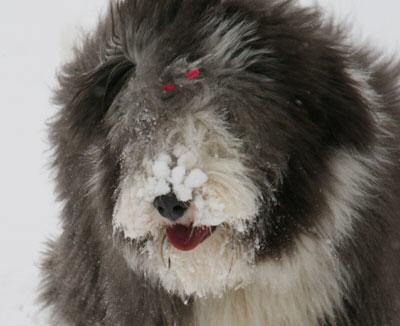 | Nach Paula ist Jette die erste, deren Rufname sich nicht zumindest aus ihrem Zuchtnamen ableitet: Sweet Summerwine of the Loyal Lads and Ladies. Für Ausstellungsbesucher und HP-Leser ist das ein wenig schwieriger, aber für uns ist es ganz stimmig so: Jette ist eine richtige Jette. Meine Schwiegermutter nannte ein Mädchen, das fröhlich und lustig ist und den Schalk im Nacken hat "eine richtige Jette". Selbstverständlich, dass ein richtige Jette einen Riss im Kleid und zumindest einen aufgelösten Zopf hat. Genau so ist unsere Jette! Während Nell die Pfützen meidet, findet Jette das kleinste Wassertröpfchen (möglichst moddriges Wasser!), aber sie bringt uns auch durch ihre Kapriolen immer wieder zum Lachen.