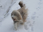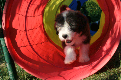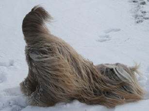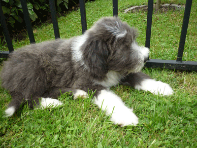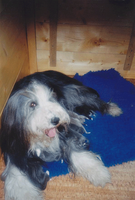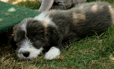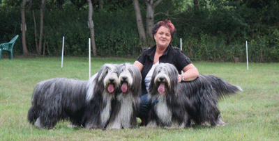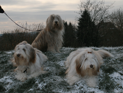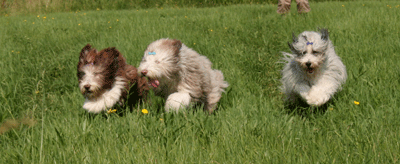 | Herzlichen Glückwunsch an alle I-Wurf-Kinder.Hier bei uns vertritt euch India auf's Beste! Sie sorgt dafür, dass uns nicht langweilig wird und wir nicht geistig verflachen. Geht man ahnungslos und unverfänglich irgendwo spazieren, wird sie das Schlammloch für eine ausgiebiges Schlammbad finden. Wähnt man alle Hunde auf der abgetrennten Terrasse, klopft sie an die Haustür: Triefendnass, weil sie sich im Fluss erfrischt hat. Wann wird so ein Beardie erwachsen? Hoffentlich nicht so bald!