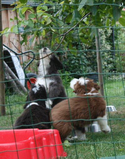 | Doris und Alexandra haben mich gerade noh mit Bildern vom D-Wurf versorgt. Vielen Dank!Oben sehen Sie den heutigen Ur-Opa vor neun Jahren und unten Mama Amy mit der bunten Jungsbande.
