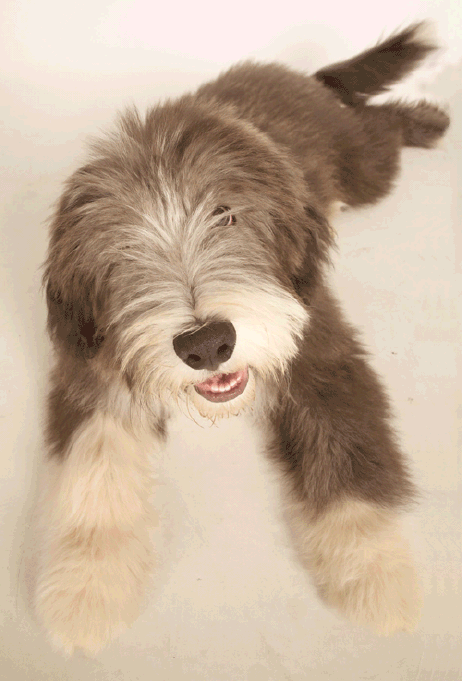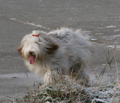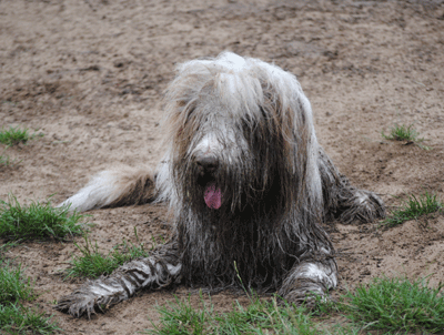 | Heute habe ich kurz Morti und seine Menschen bei einem Beardie-Spaziergang getroffen. Er sieht ist ein schöner, kräftiger Jungrüde, der seiner Mutter India in diesem Alter sehr ähnelt. Auch vom Wesen - er ist sehr fröhlich und kontaktfreudig!Das Bild ist schon etwas älter, aber so sah er auch heute morgen aus. Jedenfalls zu Beginn des Spaziergangs! Sein Frauchen hat mir versprochen, dass er zum Ende der Veranstaltung nicht mehr der der hellste Hund sondern der schmutzigste sein würde. Etwa so: