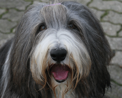 | 2003 wurde es höchste Zeit für eine neue Zuchthündin - nachdem im D-Wurf nur Rüden waren und dann leider ein ganzes Jahr ohne Welpen.Als absehbar war, das die Quarantäne für Großbritanien abgeschafft würde, hatte ich mir vorgenommen einmal zum Decken in das Mutterland der Beardies zu fahren. Kerstin Selle stellte für mich einen Kontakt zu Brenda White her.